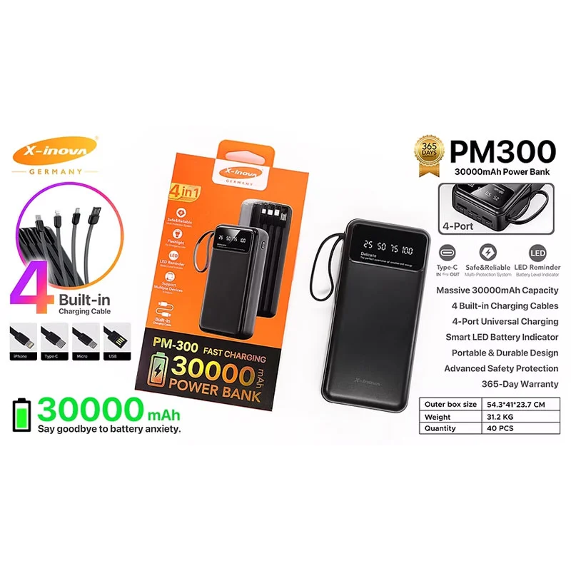 پاوربانک مدل X-inova PM300 ظرفیت 30000میلی آمپرساعت