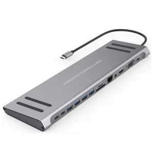 - 13 پورت مختلف: این هاب با 13 پورت متنوع، از جمله USB 3.0، HDMI، Ethernet، کارتخوان و ورودیهای صوتی و تصویری، تمامی نیازهای شما را برای اتصال دستگاههای مختلف به لپتاپ یا کامپیوتر تأمین میکند.