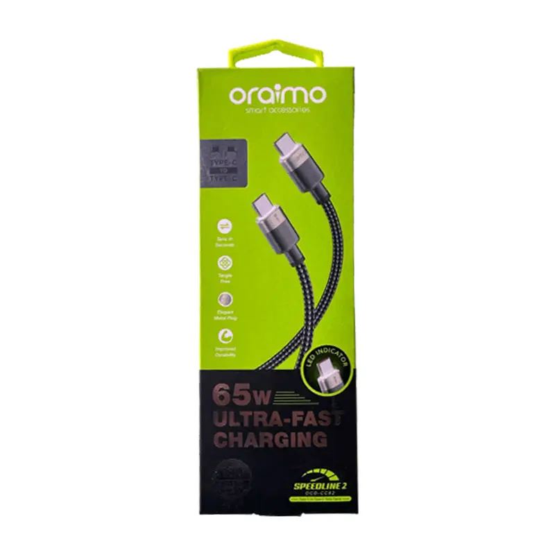 - کابل شارژر دو سر تایپ سی اورایمو مدل Oraimo OCD-CC82با توان ۶۵ وات و نشانگر LED
