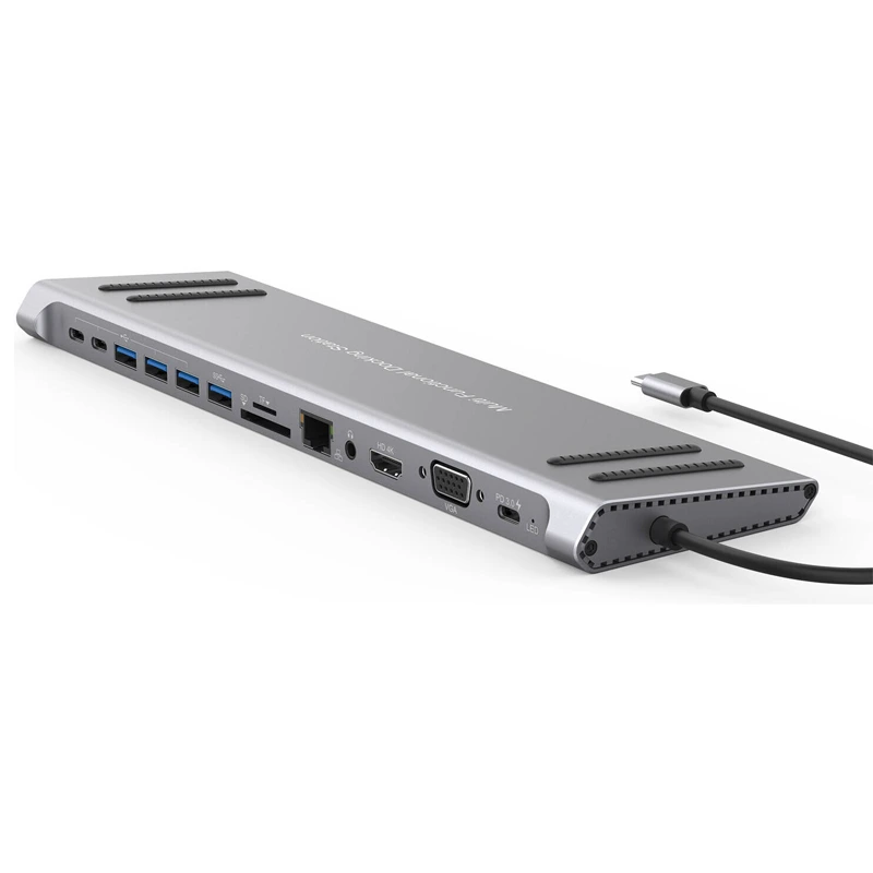 هاب Onten OTN-9199A 13-in-1 USB-C Multifunction Docking Station یک دستگاه کاربردی و عالی است که به شما این امکان را می‌دهد تا تنها با یک پورت USB-C، تعداد زیادی پورت و امکانات اضافی را به دستگاه‌های خود اضافه کنید. این هاب مخصوصاً برای کسانی که از لپ‌تاپ‌های باریک و سبک مانند مک‌بوک یا دستگاه‌های مشابه استفاده می‌کنند، انتخابی عالی است که می‌تواند تجربه کاری شما را به سطح بالاتری ببرد.