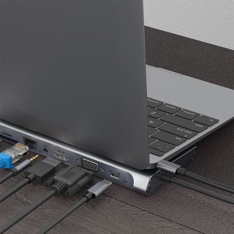• 13 پورت مختلف: این هاب با 13 پورت متنوع، از جمله USB 3.0، HDMI، Ethernet، کارت‌خوان و ورودی‌های صوتی و تصویری، تمامی نیازهای شما را برای اتصال دستگاه‌های مختلف به لپ‌تاپ یا کامپیوتر تأمین می‌کند.