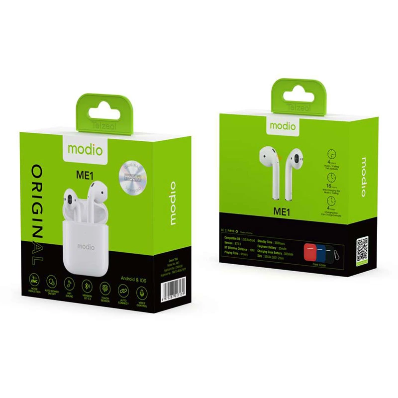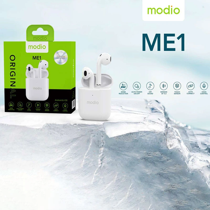 این هندزفری بسیار سبک و راحت است و گوش را خسته نمی کند. برای افرادی که عادت دارند موسیقی را با صدا و کیفیت بالا گوش دهند پیشنهاد خوبی است. همچنین در زمان مکالمه و پخش موزیک تا 3 ساعت شارژ را نگه میدارد. برای افرادی که علاقه دارند موزیک را به حالت بلوتوث و با کیفیت بالا بشنوند هدفون بی سیم «مودیو» (modio) مدل ME1 با طراحی زیبا، سبک و راحت گزینه مناسبی است. این هدفون گوش را در طولانی مدت خسته نمی کند و در حالت مکالمه و پخش موزیک، تا 3 ساعت شارژ نگهداری میکند. همچنین شارژ استند بای این هدفون تا 360 ساعت است. هدفون بی سیم «مودیو» (modio) مدل ME1 دارای یک باکس سفید رنگ است که به عنوان مخزن شارژ آن نیز محسوب میشود. محدوده عملکرد این هدفون تا 10 متر و نسخه بلوتوث آن 5.3 است. کمپانی (modio) در سال 2014 در کشور ایسلند تاسیس شد. محصولات این کمپانی در حوزه تکنولوژی لوازم جانبی موبایل و کامپیوتر است.